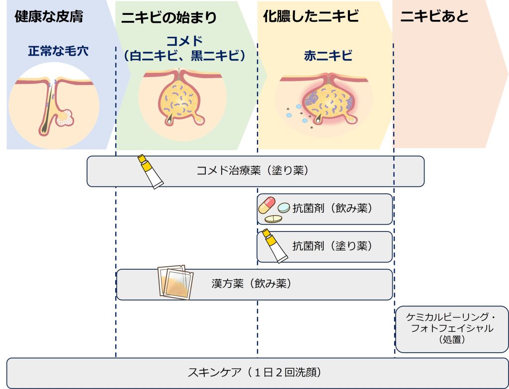 当院でのニキビ治療を、下の図にまとめました。